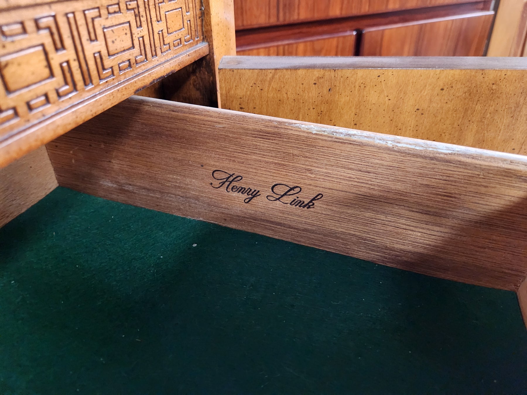 HENRY LINK "Mandarin" Collection China Cabinet w/ brass accents + silverware drawer (38W 16D 76H)