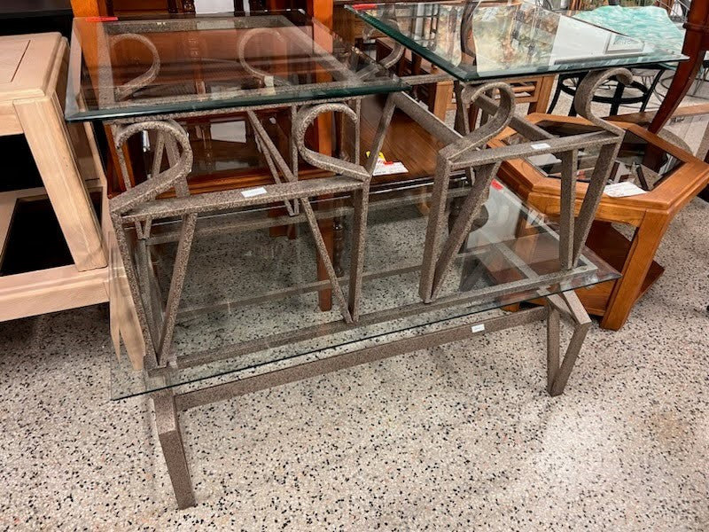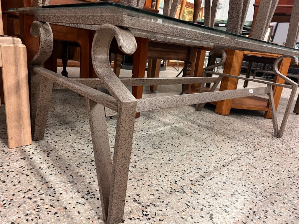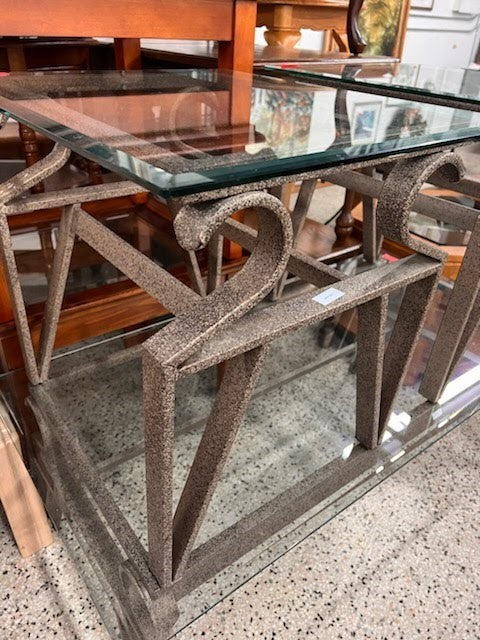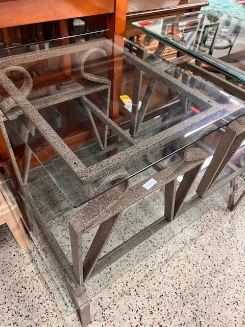 3 PIECES - glass top metal base coffee table 48"w 24"d 18"h and end tables 20"w 24"d 21"h