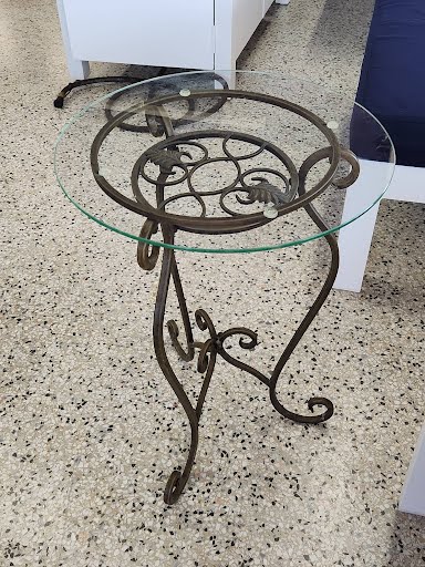 Metal Base Glass Top Plant Stand 15R 20H