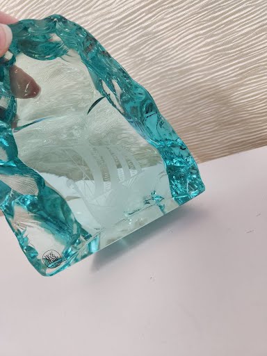 Etched Ship Vickie Lindstrand Ice Block Paperweight Sculpture Hovmantorp Sweden