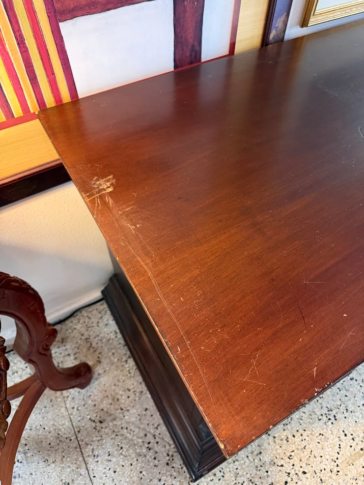 98x25x30" Dark Solid Wood Entertainment Console w.Storage **AS IS-scratches on top / CD Holders & Shelving