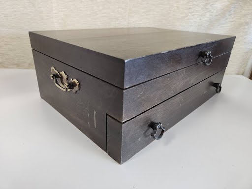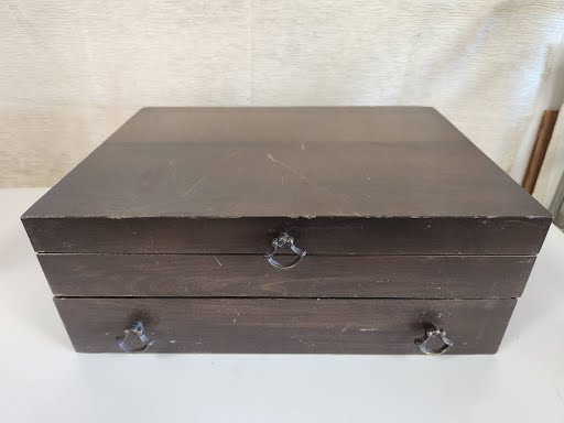 ONEIDA Gold Plate Cutlery Set in Dark Wood Box 14.5W" x 10.5D" x 5.5H"