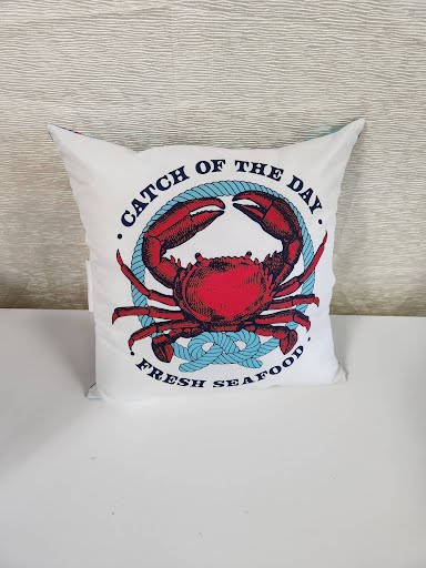 Reversible Crab throw pillow "Catch of the Day" 16x16